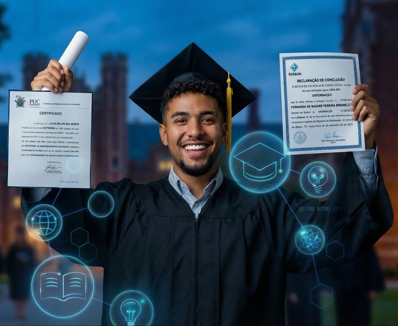 Você pode adquirir diplomas para diversos tipos de cursos, incluindo graduação, pós-graduação, técnicos e cursos livres.